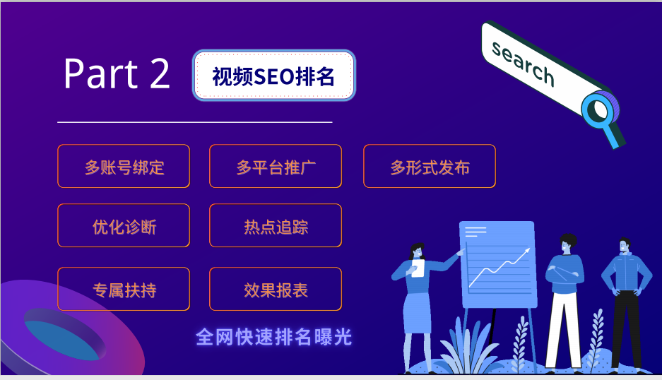 2、短期产生精准询盘客户,长期打造自媒体垂直账号。制作好的视频作品通过关键词优化后发布,通过独特的搜索引擎技术实现视频作品排在细分垂直领域,行业排名前十名,短期内做到有客户主动咨询。再以搜索流量为切入口,累计越来越多从搜索入口来的流量产生的点击、播放、评论,让账号对应的用户画像越来越清晰,从而让账号越来越垂直,后面发布的视频流量越来精准,转化率越来越高。这个解决的是自媒体账号垂直深耕的问题。